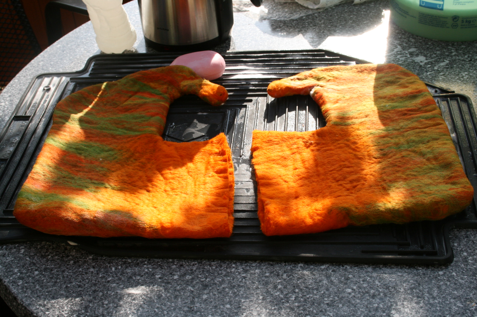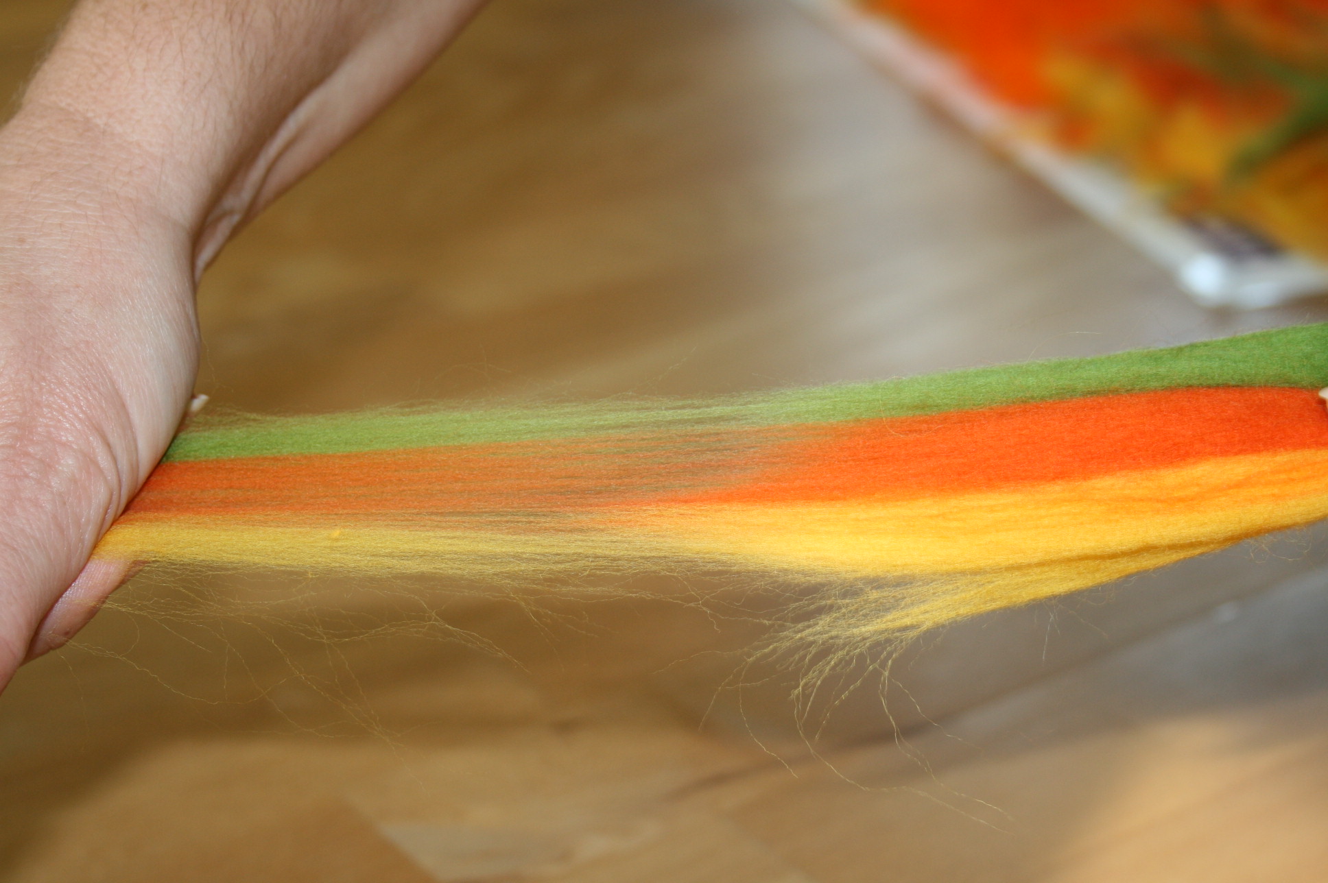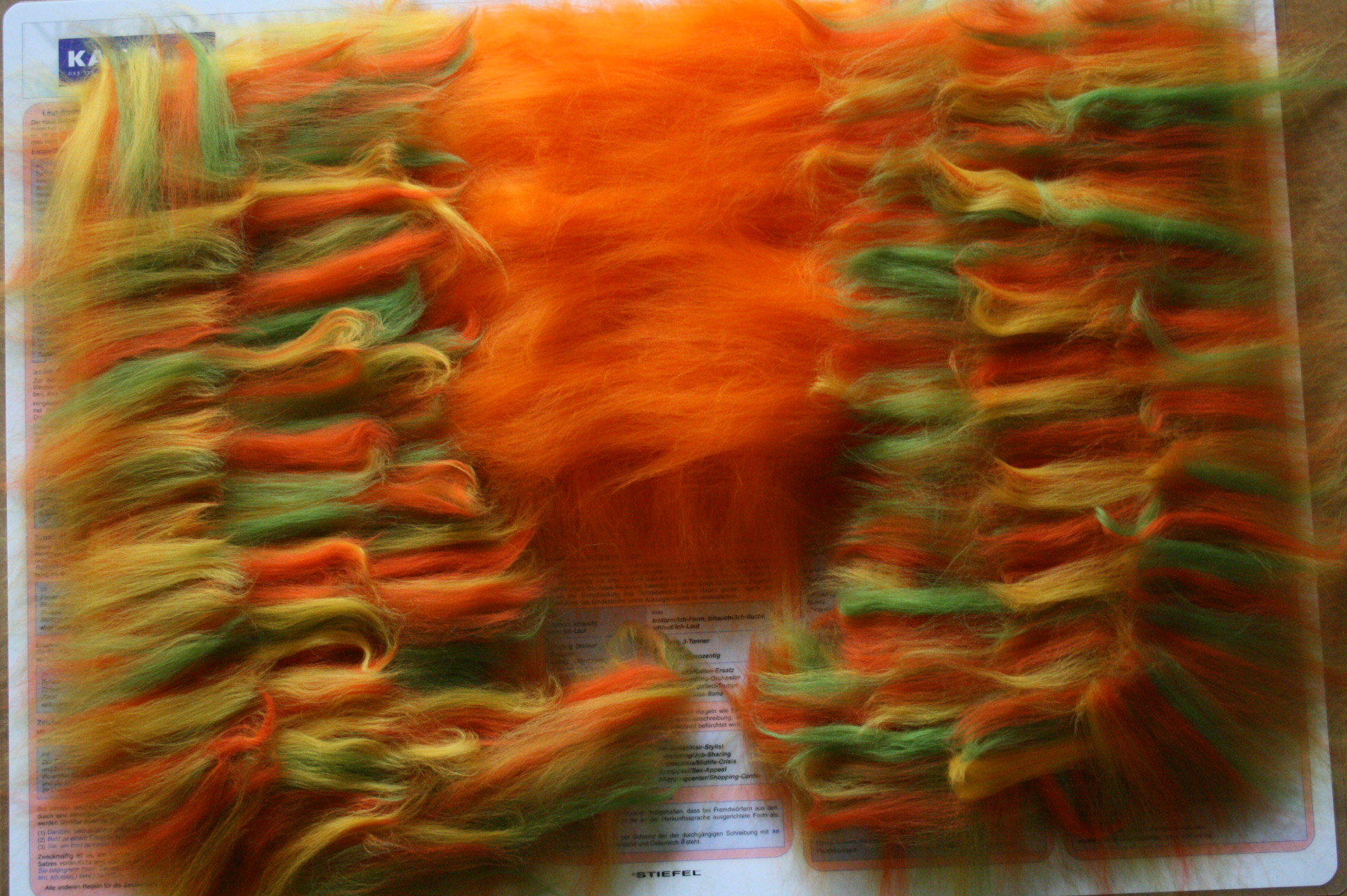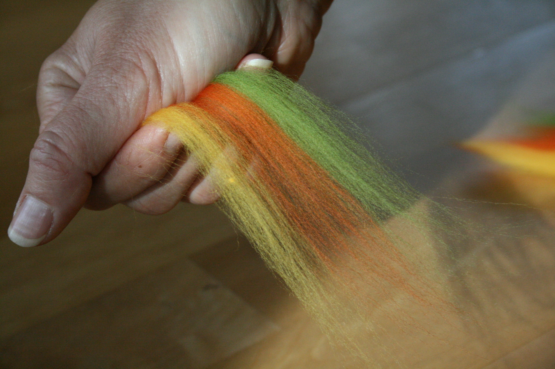 Sollen besonders edle Textilien entstehen, verarbeite ich zusätzlich Seidenstoffe oder Seiden- der Leinenfasern, die sich im Laufe des Bearbeitungsprozesses mit den Wollfasern verbinden.